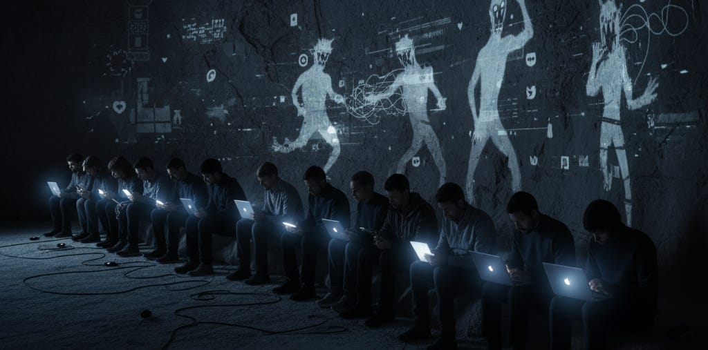 In the Republic, Plato described prisoners in a cave who mistake shadows for truth. Today, our caves are newsfeed. Algorithms do not show us reality they show us what will keep us scrolling.